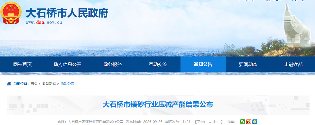 大石橋市公布鎂砂行業(yè)壓減產(chǎn)能結(jié)果