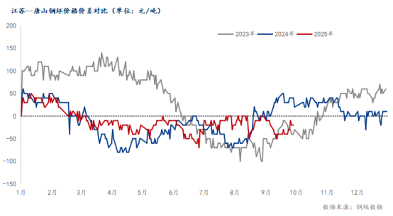 圖三:江蘇-唐山鋼坯價(jià)差對(duì)比(南北價(jià)差對(duì)比)