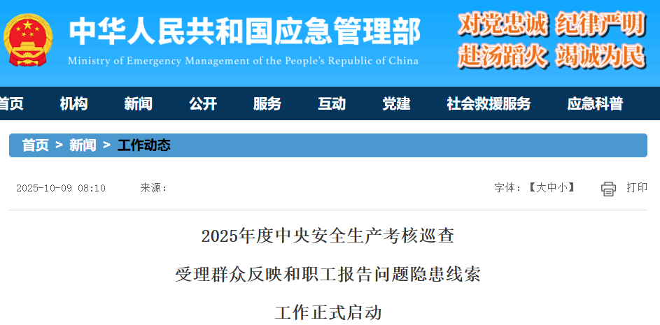 按照2025年度中央安全生產(chǎn)考核巡查工作安排,11月份,22個中央安全生產(chǎn)考核巡查組將陸續(xù)進駐31個省、自治區(qū)、直轄市和新疆生產(chǎn)建設(shè)兵團開展年度考核巡查。