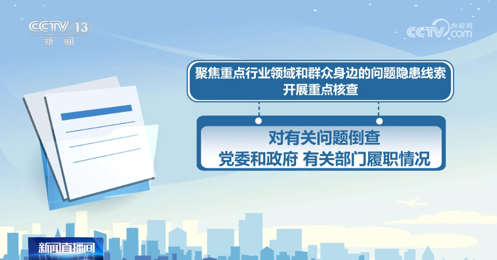 應(yīng)急管理部安全生產(chǎn)綜合協(xié)調(diào)司司長(zhǎng) 汪崇鮮:主要采取座談問詢、受理群眾反映和職工報(bào)告問題隱患線索、明察暗訪、調(diào)閱重點(diǎn)資料、約談會(huì)商、個(gè)別談話、專家指導(dǎo)服務(wù)等方式進(jìn)行。重點(diǎn)聚焦“五個(gè)嚴(yán)查”,分別是:嚴(yán)查黨政領(lǐng)導(dǎo)干部履行安全生產(chǎn)責(zé)任制情況、嚴(yán)查有關(guān)部門安全生產(chǎn)履職情況、嚴(yán)查安全生產(chǎn)治本攻堅(jiān)三年行動(dòng)推進(jìn)情況、嚴(yán)查年內(nèi)發(fā)生重特大事故及較大事故明顯上升的行業(yè)領(lǐng)域、嚴(yán)查群眾反映和職工報(bào)告的重要問題隱患線索。