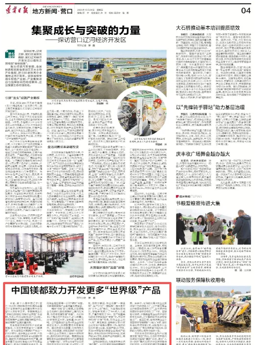 堅(jiān)持創(chuàng)新驅(qū)動(dòng),為高速發(fā)展點(diǎn)燃“新引擎”。大石橋市積極推動(dòng)菱鎂產(chǎn)業(yè)延鏈補(bǔ)鏈發(fā)展,向鎂化工、鎂建材、鎂合金產(chǎn)業(yè)發(fā)力,開發(fā)更多“世界級(jí)”菱鎂產(chǎn)品。2025年,大石橋市謀立推建涉鎂工業(yè)項(xiàng)目32個(gè),總投資12.8億元。綠色發(fā)展與智能化轉(zhuǎn)型同頻共振。2025年,光陽耐火等3家企業(yè)獲評(píng)營口市級(jí)綠色工廠,遼寧青花等企業(yè)沖刺國家級(jí)綠色工廠,全市累計(jì)培育國家和省市級(jí)綠色工廠7家。在智能化領(lǐng)域,中鎂高溫等企業(yè)獲評(píng)省級(jí)數(shù)字化車間,遼寧嘉順成為先進(jìn)級(jí)智能工廠。截至目前,全市涉鎂企業(yè)中有國家級(jí)專精特新“小巨人”4家、省級(jí)制造業(yè)單項(xiàng)冠軍3家,創(chuàng)新型中小企業(yè)、智能工廠等各類榮譽(yù)不勝枚舉,創(chuàng)新能力與核心競(jìng)爭(zhēng)力后勁十足。