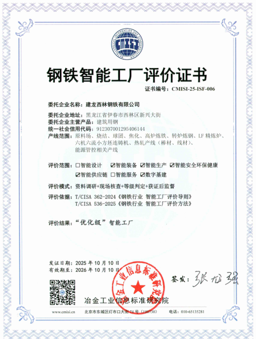 近日,在第六屆中國(guó)鋼鐵工業(yè)智能制造發(fā)展大會(huì)上,建龍西鋼被授予“優(yōu)化級(jí)”智能工廠評(píng)價(jià)證書,成為首批獲得該評(píng)價(jià)證書的10家鋼鐵企業(yè)之一,標(biāo)志著建龍西鋼在智能工廠建設(shè)方面邁出了具有里程碑意義的關(guān)鍵一步。