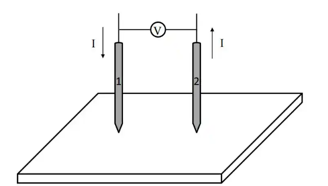 1、兩探針?lè)▋商结樂(lè)ㄓ址Q(chēng)歐姆表法,是一種結(jié)構(gòu)簡(jiǎn)單的電阻率測(cè)量方法。如下圖所示,兩個(gè)探針與恒流源和電壓表連接。由恒流源輸出一個(gè)恒定電流,電壓表測(cè)量?jī)蓚€(gè)探針間的電壓,然后由歐姆定律得出電阻值。兩探針?lè)ǘ嘤糜诖箅娮韬途纫蟛桓叩那闆r,其原因在于導(dǎo)線(xiàn)、探針以及探針與樣品的接觸電阻等附加電阻通常在歐姆量級(jí),對(duì)于大電阻測(cè)量來(lái)說(shuō)附加電阻相對(duì)較小,對(duì)最終的結(jié)果影響有限。然而對(duì)于小電阻而言,附加電阻與被測(cè)樣品阻值接近甚至高于被測(cè)樣品阻值,因此其附加電阻會(huì)導(dǎo)致相當(dāng)大的測(cè)量誤差。