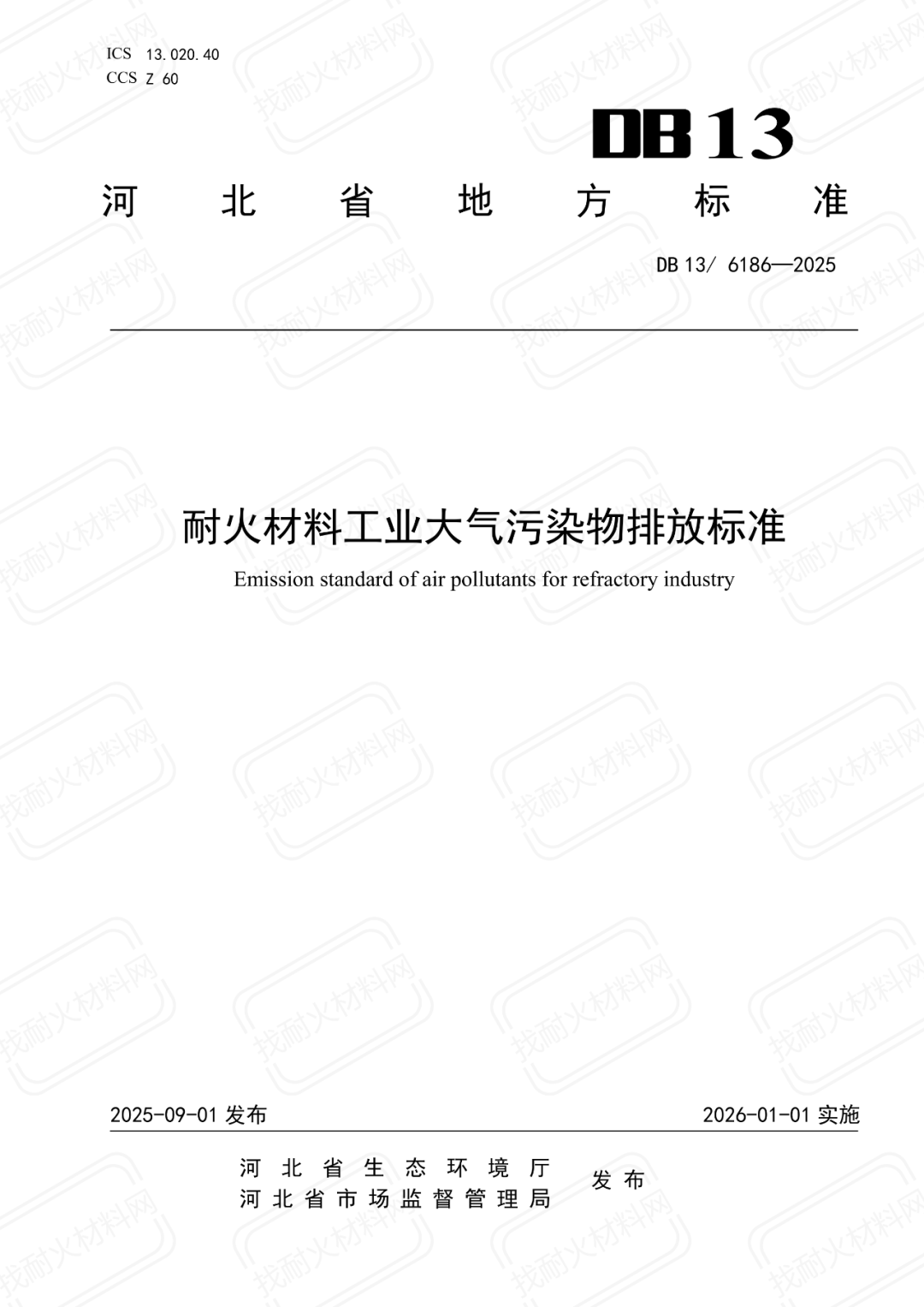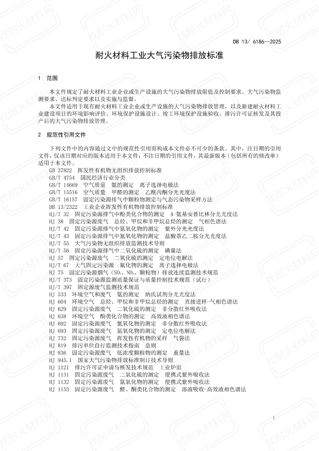 本文件規(guī)定了耐火材料工業(yè)企業(yè)或生產(chǎn)設施的大氣污染物排放限值及控制要求、大氣污染物監(jiān)測要求、達標判定要求以及實施與監(jiān)督。