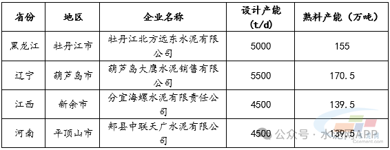 表:2025年四季度計(jì)劃新投熟料生產(chǎn)線信息
