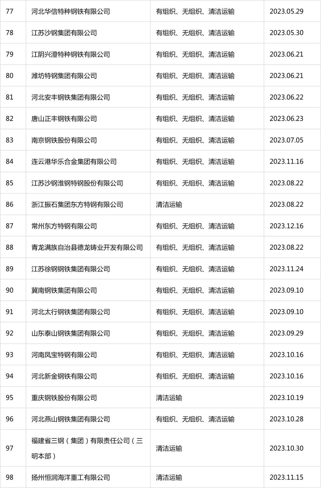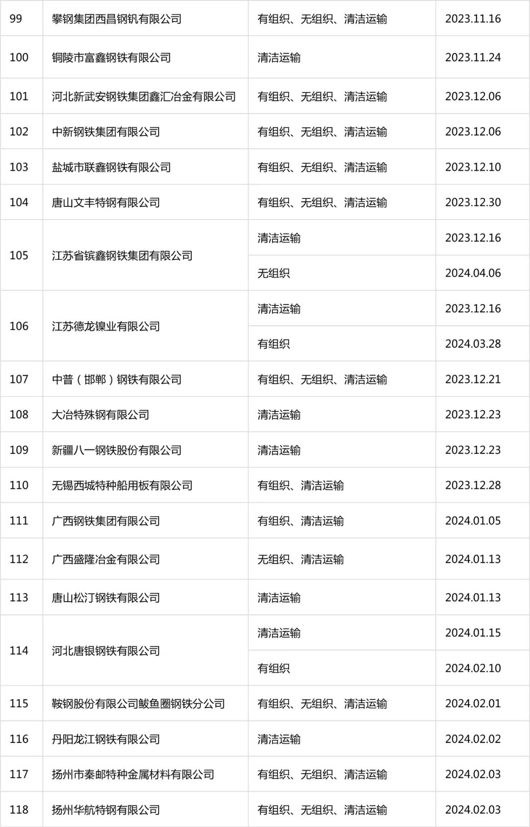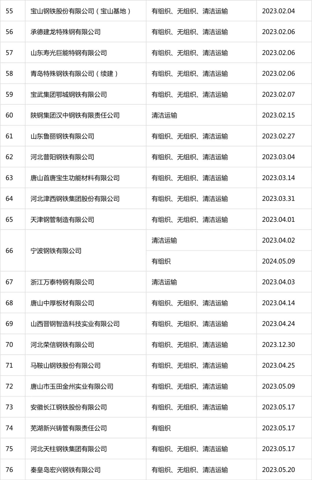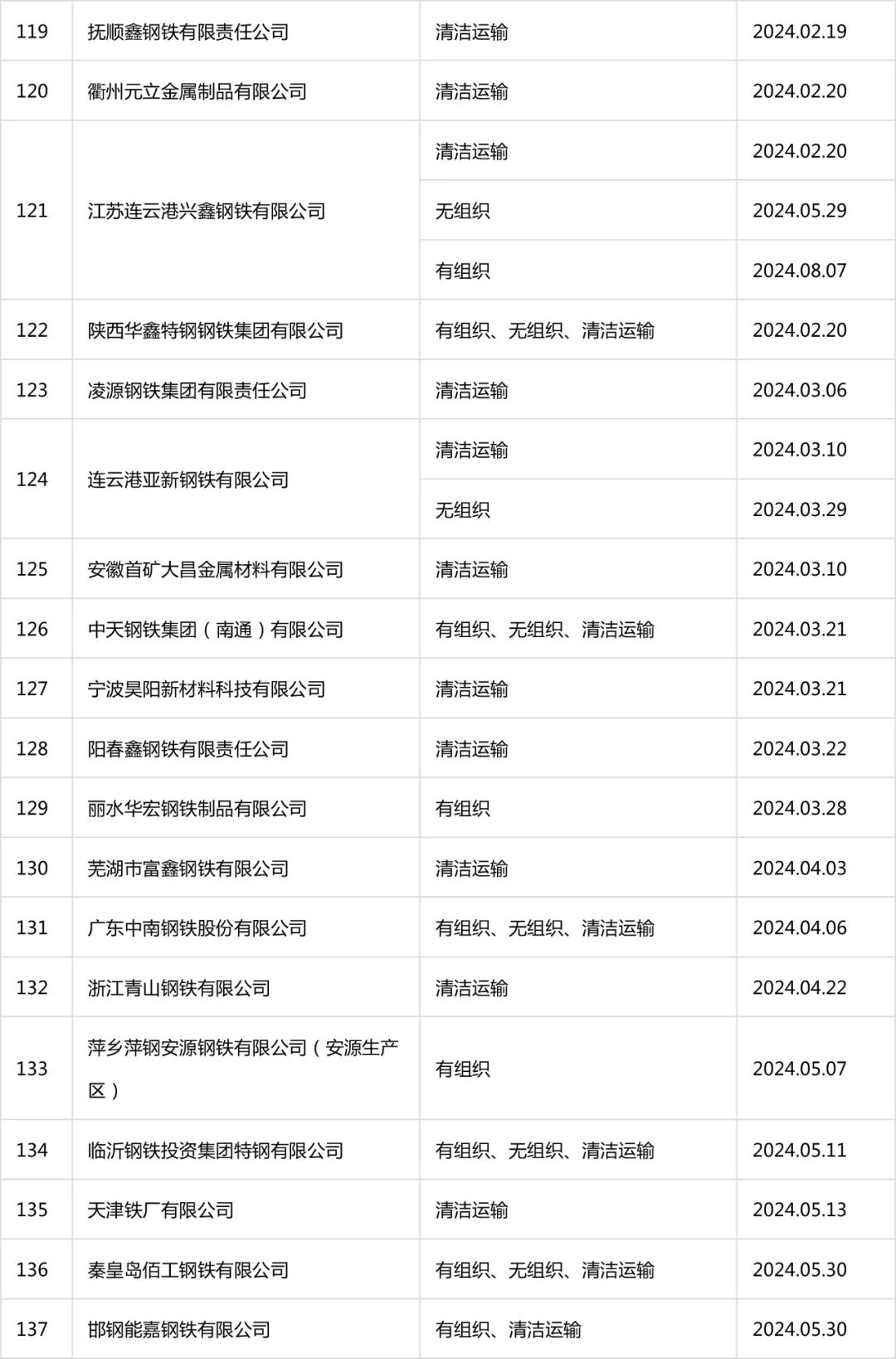 自2020年8月起,中國(guó)鋼鐵工業(yè)協(xié)會(huì)開展了鋼鐵企業(yè)超低排放改造和評(píng)估監(jiān)測(cè)進(jìn)展情況公示工作。截至目前,鋼協(xié)網(wǎng)站已公示企業(yè)名單及各企業(yè)公示內(nèi)容如下: