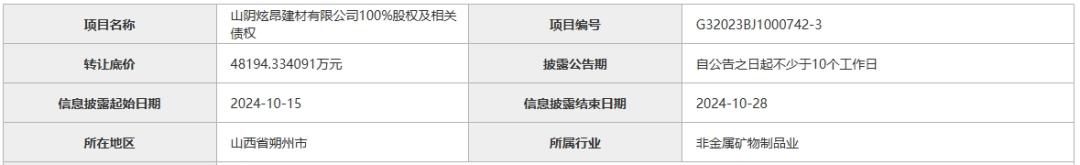 據(jù)某產(chǎn)權(quán)交易平臺(tái)顯示,山陰?kù)虐航ú挠邢薰?00%股權(quán)及相關(guān)債權(quán)轉(zhuǎn)讓,轉(zhuǎn)讓底價(jià)約4.8億元。