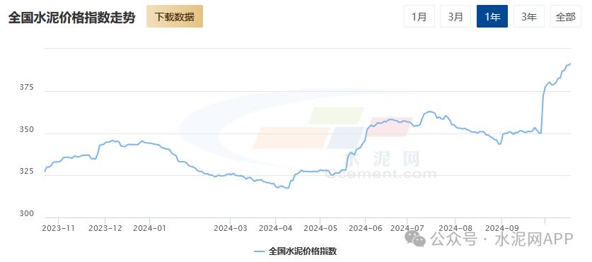 10月22日,全國(guó)水泥價(jià)格指數(shù)報(bào)收391.22點(diǎn),同比漲幅達(dá)20.1%。自9月底開始,該指數(shù)呈持續(xù)上漲姿態(tài)。