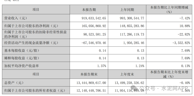 4月21日下午,廣東塔牌集團(tuán)股份有限公司披露了《2025年第一季度報告》。公司2025年1-3月份實現(xiàn)“水泥+熟料”銷量371.03萬噸,同比上升了2.53%;實現(xiàn)營業(yè)收入9.20億元,同比下降了7.42%;實現(xiàn)歸屬于公司股東的凈利潤1.65億元,同比上升了10.88%。
