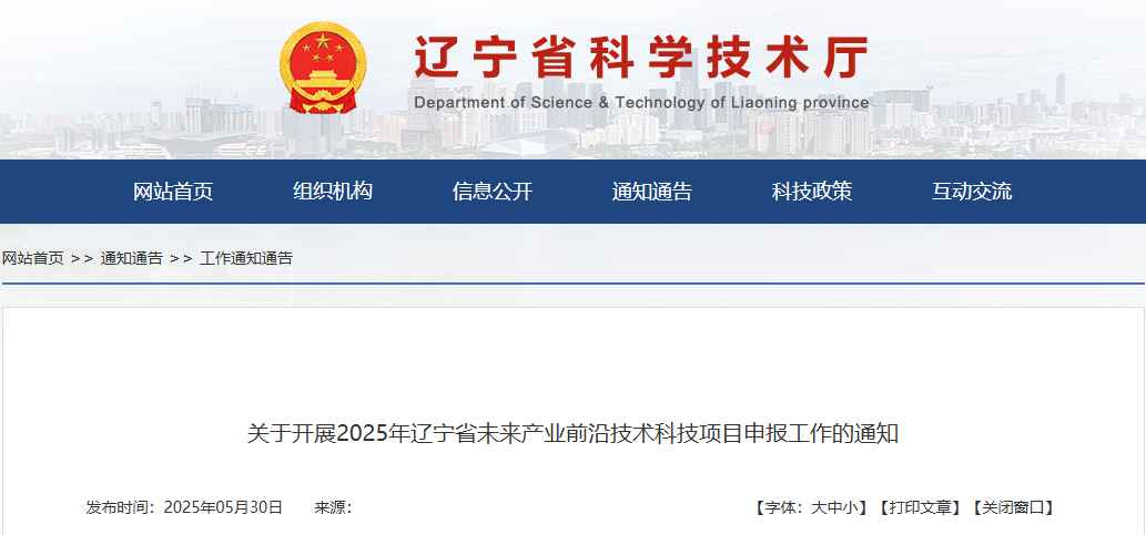 為深入貫徹黨的二十屆三中全會精神,認(rèn)真落實(shí)《遼寧省人民政府辦公廳關(guān)于科技引領(lǐng)未來產(chǎn)業(yè)創(chuàng)新發(fā)展的實(shí)施意見》(遼政辦發(fā)〔2024〕4號),根據(jù)《遼寧省科技計(jì)劃項(xiàng)目管理辦法》《遼寧省科技專項(xiàng)資金管理辦法》等有關(guān)規(guī)定,現(xiàn)將2025年遼寧省未來產(chǎn)業(yè)前沿技術(shù)項(xiàng)目指南予以發(fā)布,請按照要求認(rèn)真組織開展項(xiàng)目申報工作。有關(guān)事項(xiàng)通知如下: